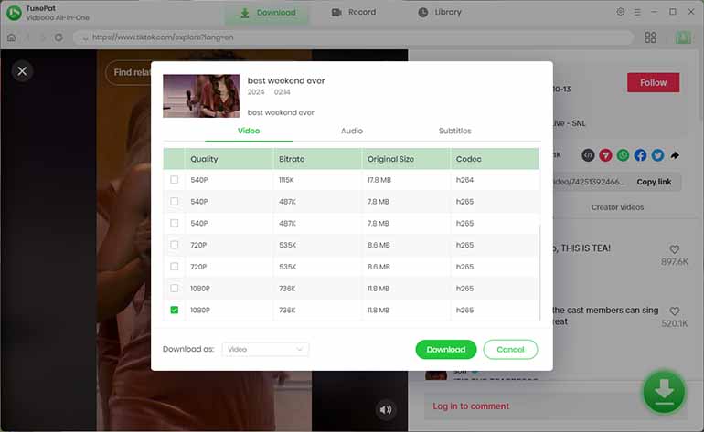 Because TikTok videos are short, they will download quickly, and you can view the downloaded videos in the Library.